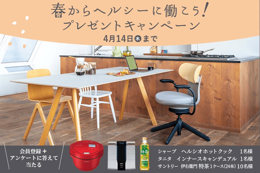 コクヨ株式会社(本社:大阪市/社長:黒田 英邦)は、3月15日(火)~4 月14日(木)、公式ECサイト「KOKUYO Workstyle Shop(https://workstyle.kokuyo.co.jp/)」にて、春からヘルシーに働こう!プレゼントキャンペーンを開催します。