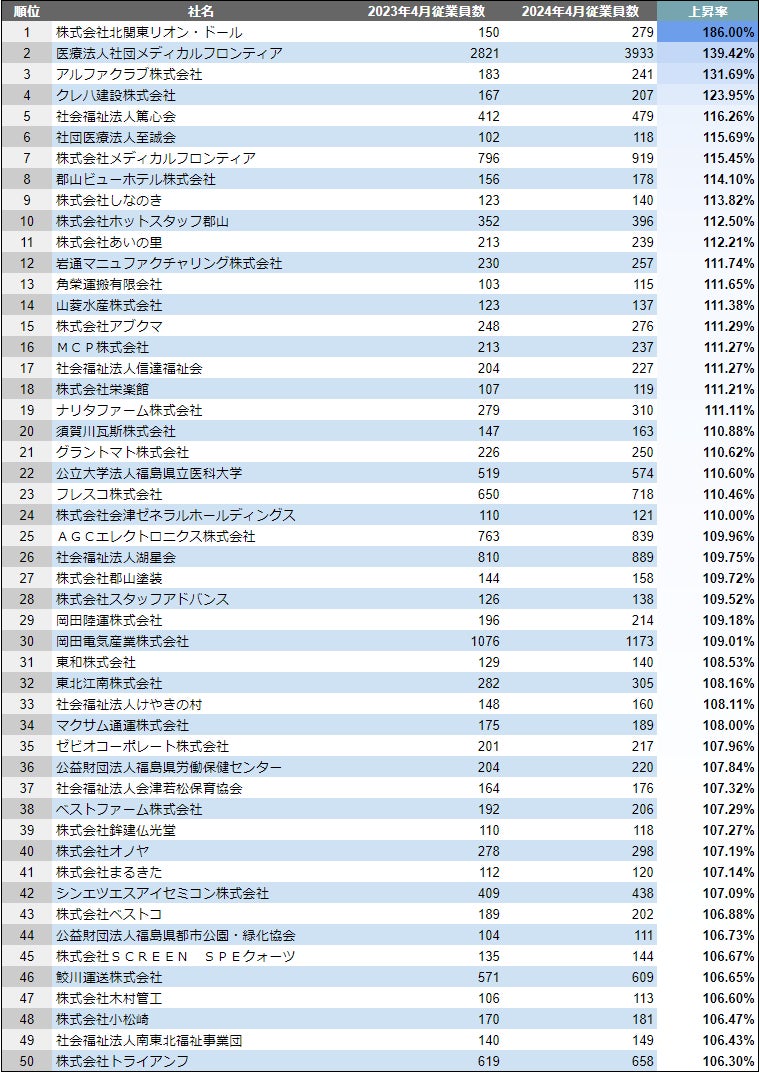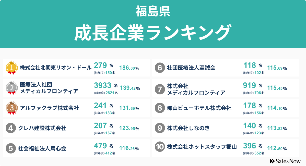 【福島県】成長企業ランキングTOP50!/SalesNow DBレポート