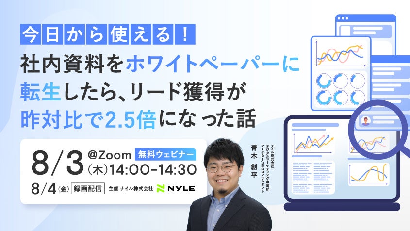 そこで本ウェビナーでは、1年でリード獲得数を2.5倍にしたナイルのホワイトペーパー活用事例をもとに、だれでも簡単にできる社内資料を活用したホワイトペーパーの作り方、そしてリード獲得に繋げるホワイトペーパー活用術を徹底解説します。