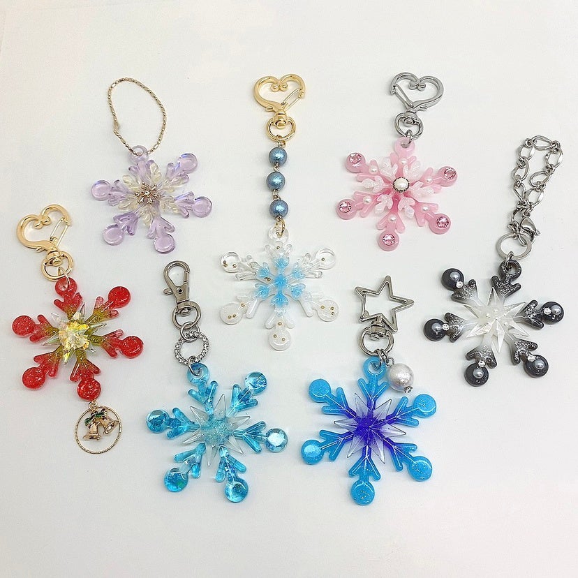 雪の結晶が美しいモチーフは、お好みのカラーやデザインを選んで作る事ができます。