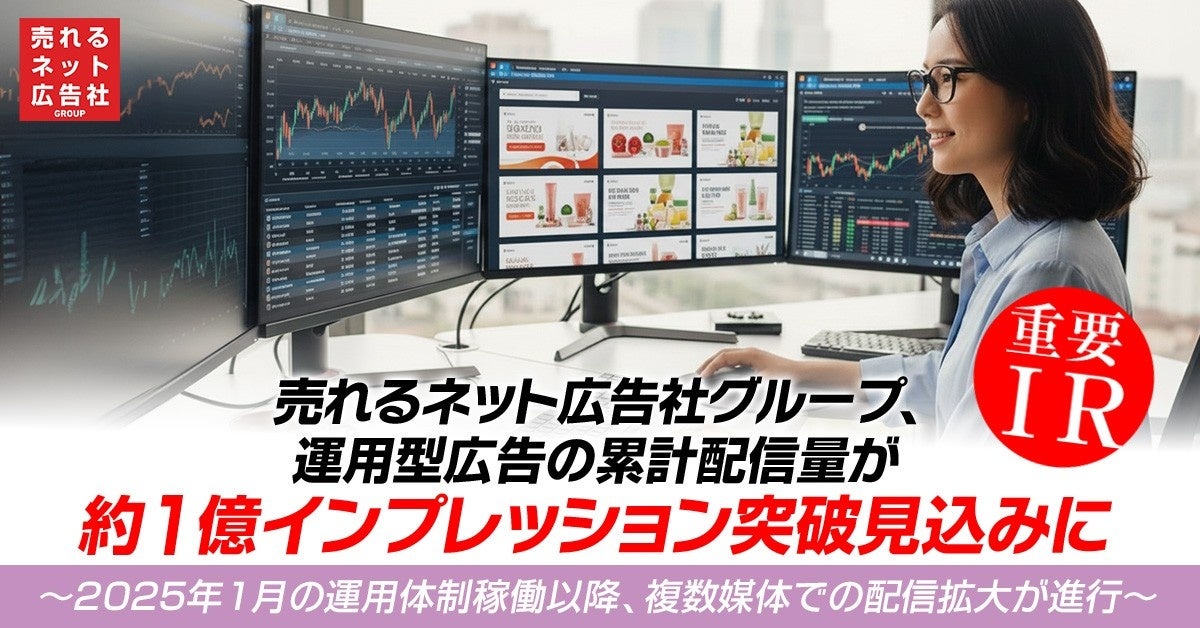 売れるネット広告社グループ、運用型広告の累計配信量が約1億インプレッション突破見込みに~2025年1月の運用体制稼働以降、複数媒体での配信拡大が進行~
