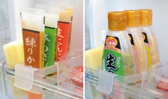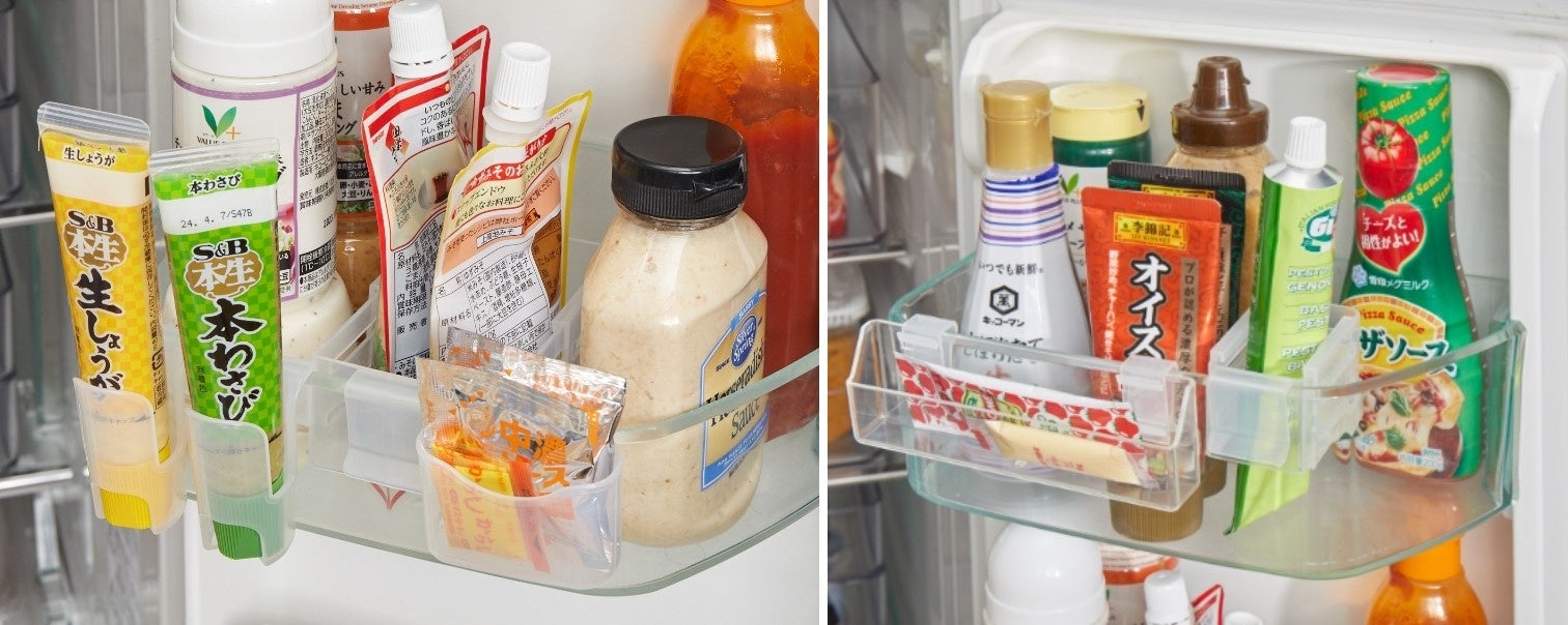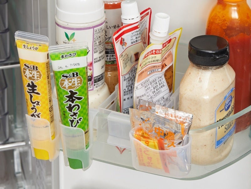 小さいものが多くてごちゃついたり、細長いチューブが倒れたり、「きちんと」収納が難しいドアポケット。この度、冷蔵庫のドアポケットをすっきり収納できる「仕切りにもなる伸縮式冷蔵庫ポケット」「冷蔵庫小物ポケット(ロング)」を7月中旬から新発売いたします。その他、チューブホルダーや仕切りもご用意していますので、ぜひ冷蔵庫整理にお役立てください。