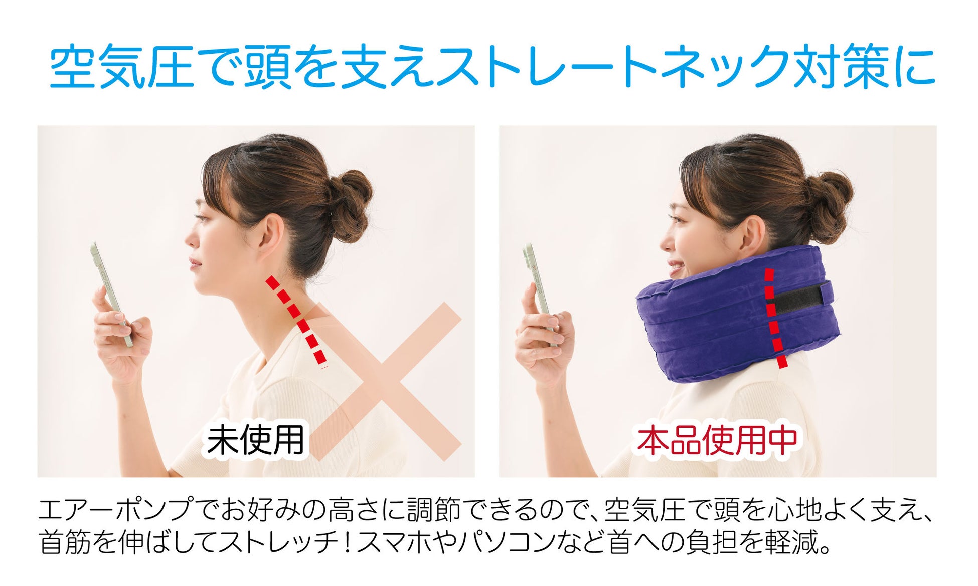 エアーポンプで空気圧の強さを自由に調節でき、首への負担や違和感を感じる前にリフレッシュ。