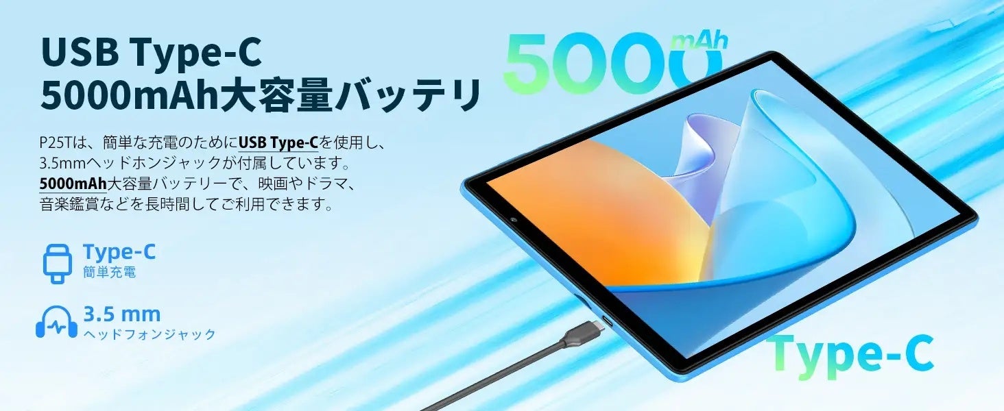 アップグレードされた8GB RAMは、より多くのアプリを同期に動作させることができ、タブレットの使い幅を更に拡大しました。64GBのストレージにMicro SD拡張を加え、心配なくストレージ可能です。主流の充電デバイスと互換可能。3.5mmのヘッドフォンジャックを備え、様々なニーズに対応できます。