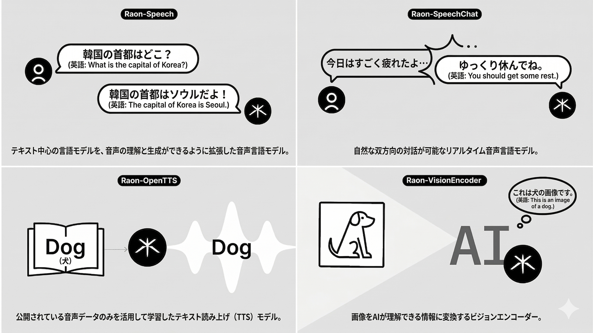 - 音声対応LLM、リアルタイム音声対話、TTS、ビジョンエンコーダの4モデルを公開