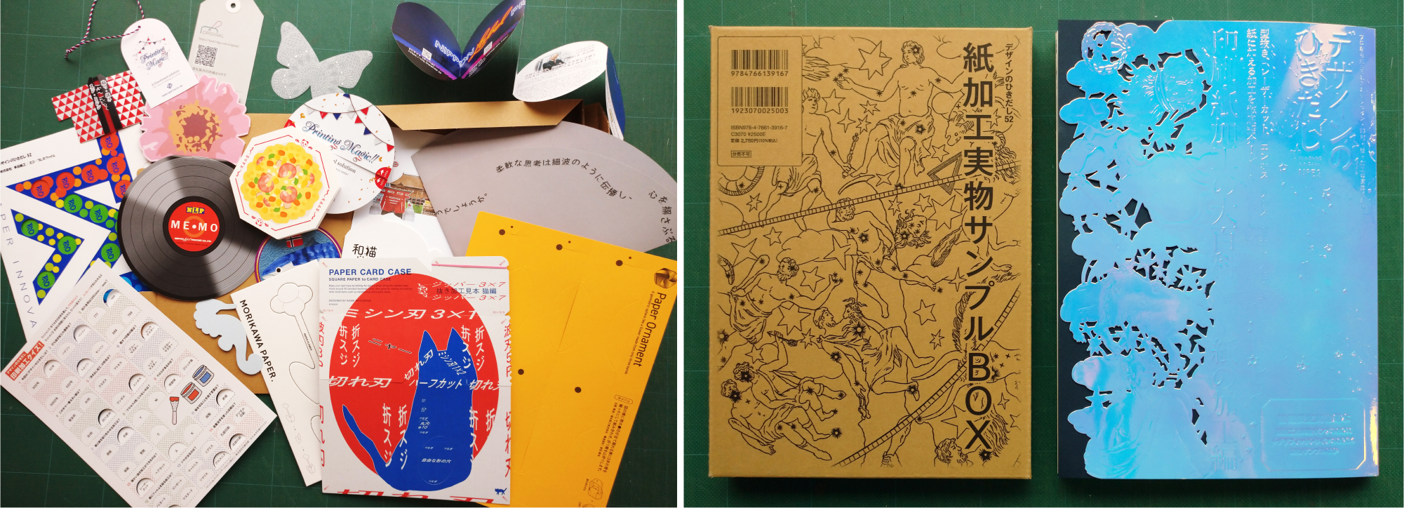 付録の実物サンプルBOXは、20種類以上の紙加工サンプル入り! 本誌を読みながら楽しめる、特別記事や連載が大充実です。