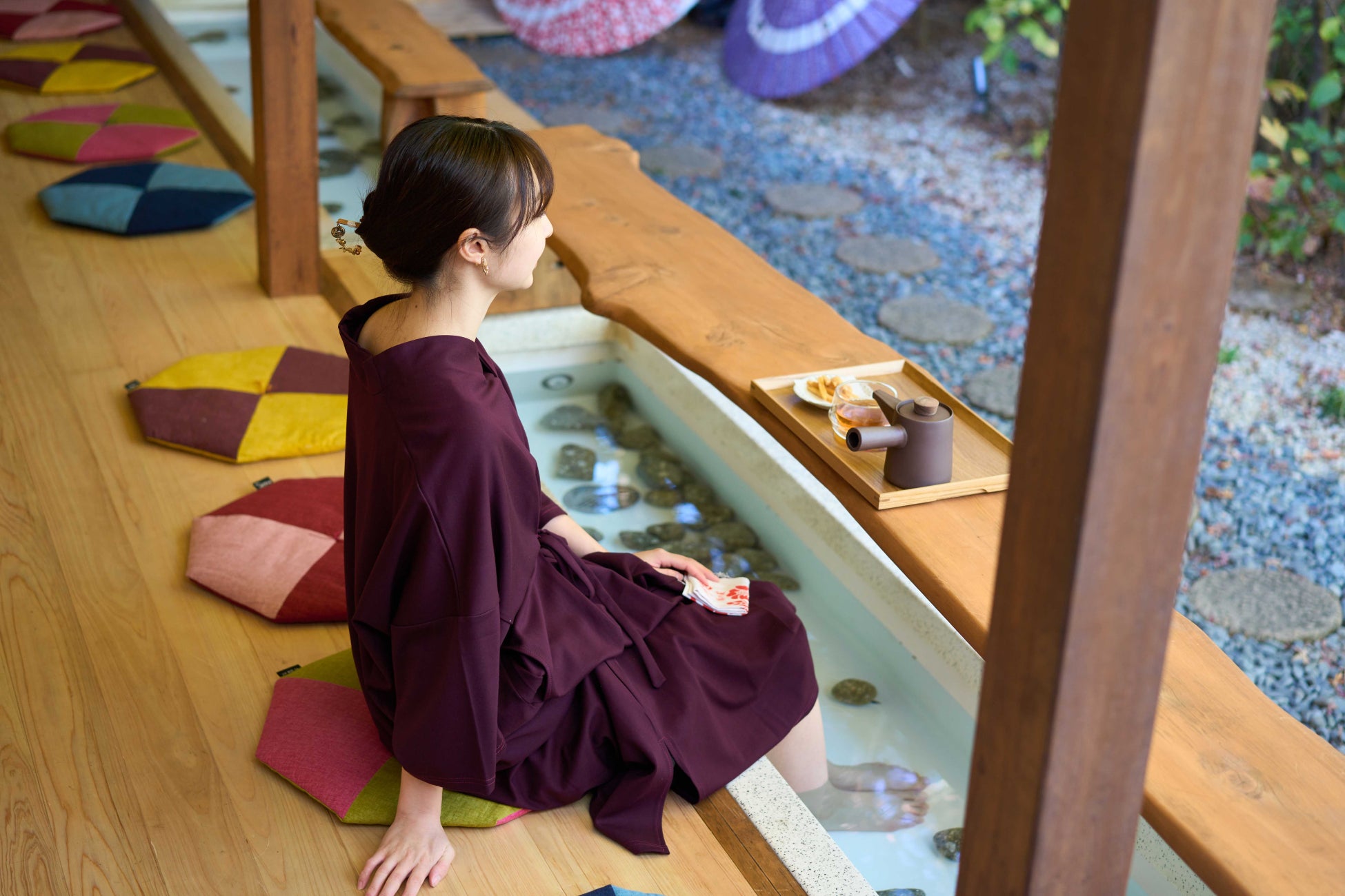 セットドリンク付き。 グランドメニューの茶・珈琲からお選びいただけます。 足湯セット料金 1,980円(税込)