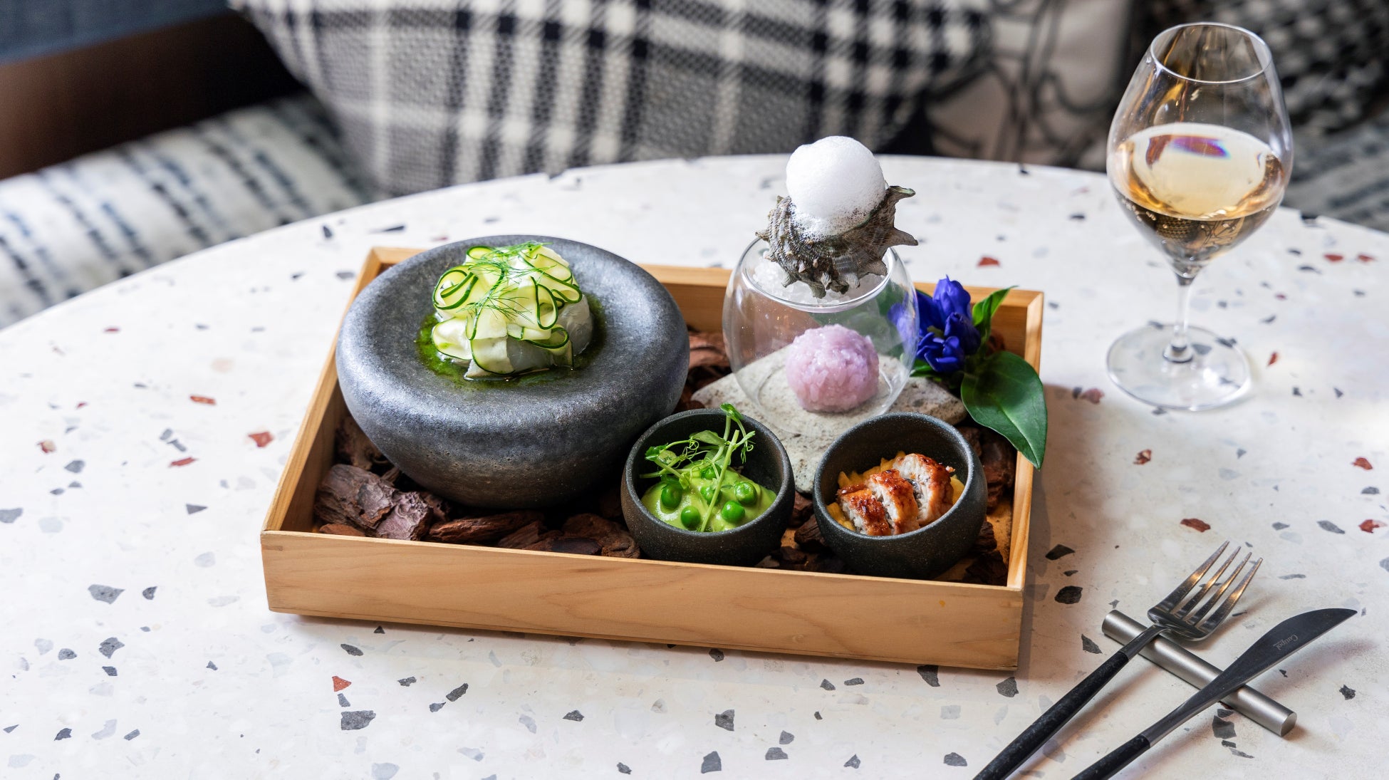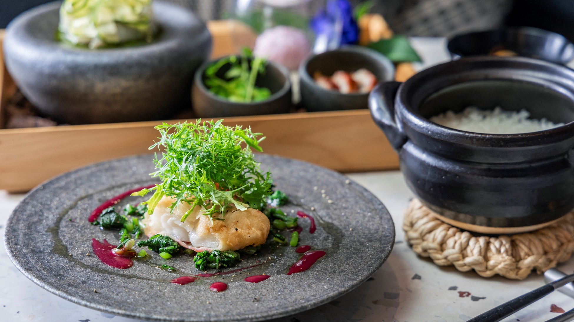 オールデイダイニングレストラン「THE LIVELY KITCHEN 福岡博多」では、和の食材と食器にイタリアンの調理法を掛け合わせ、さらにトレンドや季節表現を加えたモダンジャパニーズイタリアンを提供しております。有田焼など重厚感のあるのこだわりの和食器に繊細に盛り付けられた料理は、シェフこだわりのトレンドや季節の表現が混じり合い独創的な一皿に仕上がっており、味だけでなく提供スタイルやストーリーまで考えられ、カジュアルな接客と共に驚きと発見を楽しめるユニークなメニュー構成が特徴です。