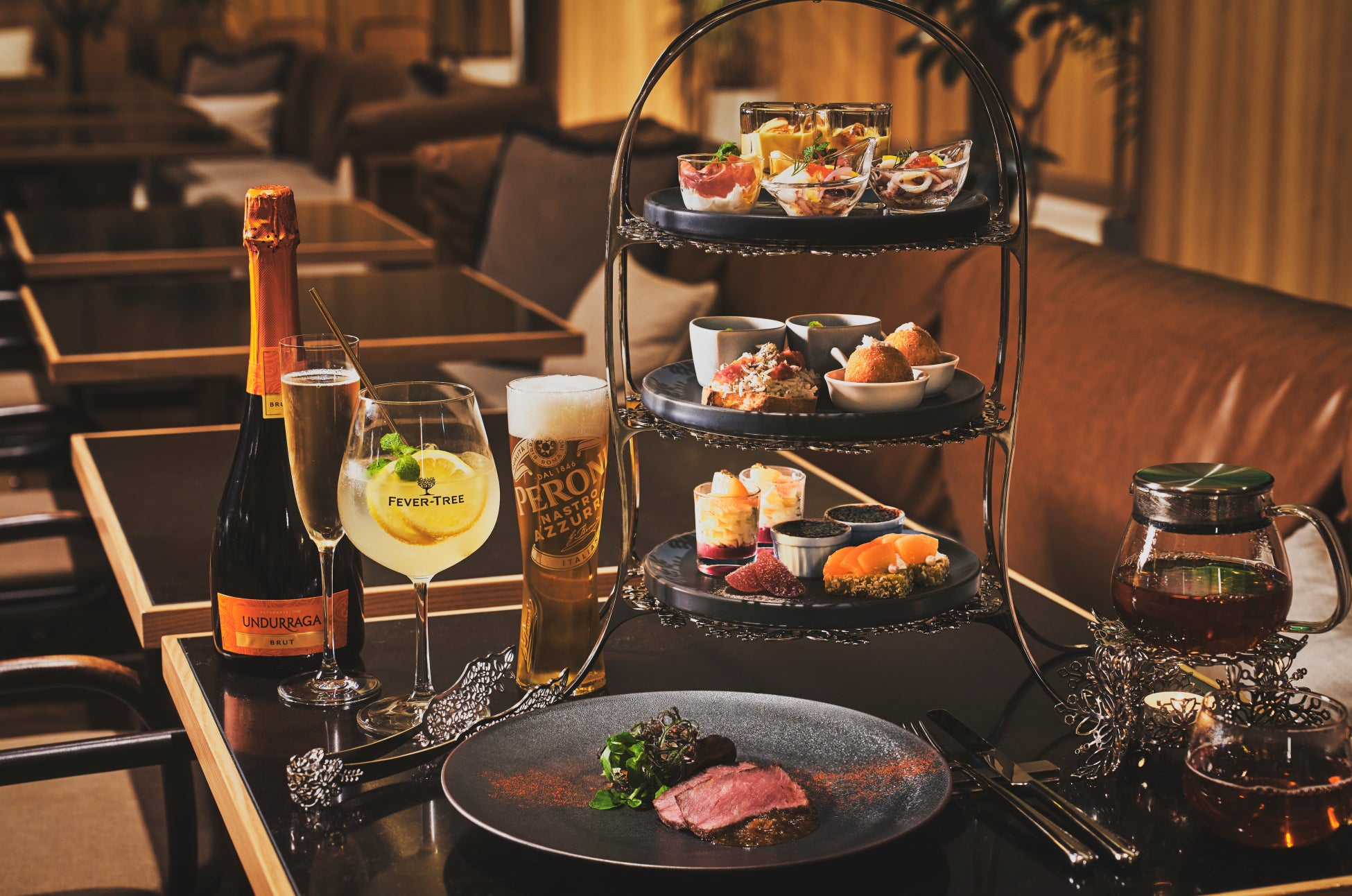 ハイティーは夕方から夜にかけての時間を楽しむ“食事を兼ねたティースタイル”のことです。昼の優雅なティータイムとして親しまれてきたアフタヌーンティーに続き、結婚式という特別な一日をプロデュースしてきたアニヴェルセルがご提案する、記念日にも大切な人との語らいにも、頑張った日の帰り道にもぴったりの新しいディナースタイルです。お酒や紅茶とともに前菜からデザートまで自由に楽しめるスタイルでご提供いたします。式場併設のカフェならではの落ち着いた空間で、ディナーフルコースよりも気軽に、でも特別感のある"幸せなひととき"をお過ごしいただけます。とうもろこしの冷製ポタージュや、白桃とチーズのカプレーゼなどのコールドアペタイザー、トリュフのアランチーニやしらすのブルスケッタなどのホットアペタイザー、さらに国産牛ステーキのメインプレートも添えた、ディナーにも適した贅沢な構成でご提供いたします。スタンドの3段目にはデザートもご用意し、カジュアルなフルコーススタイルでお楽しみいただけます。さらに、ビールやスパークリングワイン、レモンサワー、ワインなどのアルコールドリンクもフリーフローでご用意。特別な日のディナーはもちろん、仕事帰りのご褒美時間にもおすすめです。イブニングハイティーという新しい選択肢を、ぜひ一度お試しください。