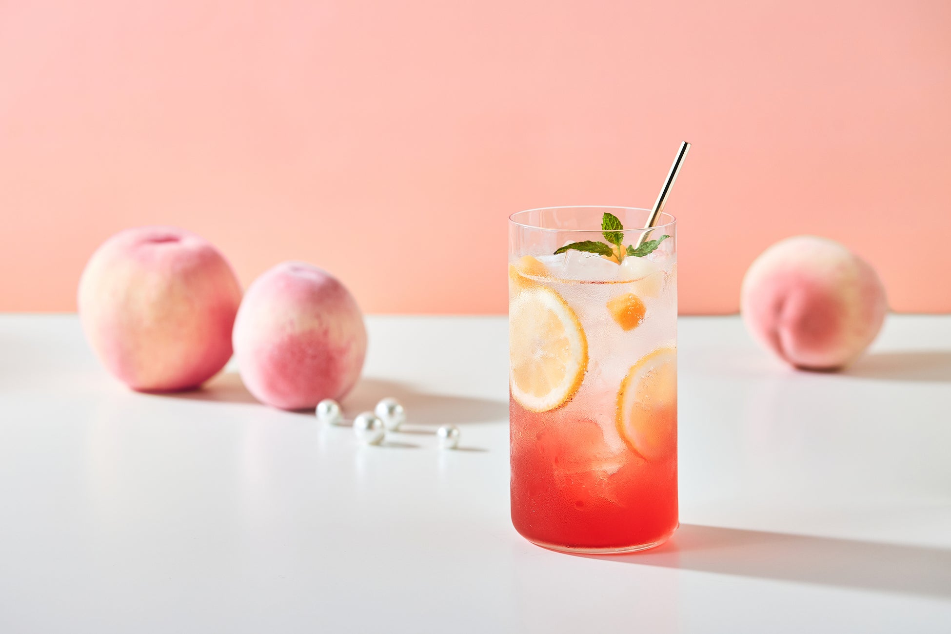 夏にぴったりな桃ドリンク4種が登場。さっぱり爽やかな「MOMOハーブティーソーダ」や、昨年発売時にご好評いただき、今年も再登場する「MOMOロイヤルミルクティー」は甘さ控えめにリニューアル。アルコールでは、桃が華やかに香る「MOMO・ブランシュ」や、ローズティーが香る「MOMO・ロゼ・パルファム」をご用意しました。