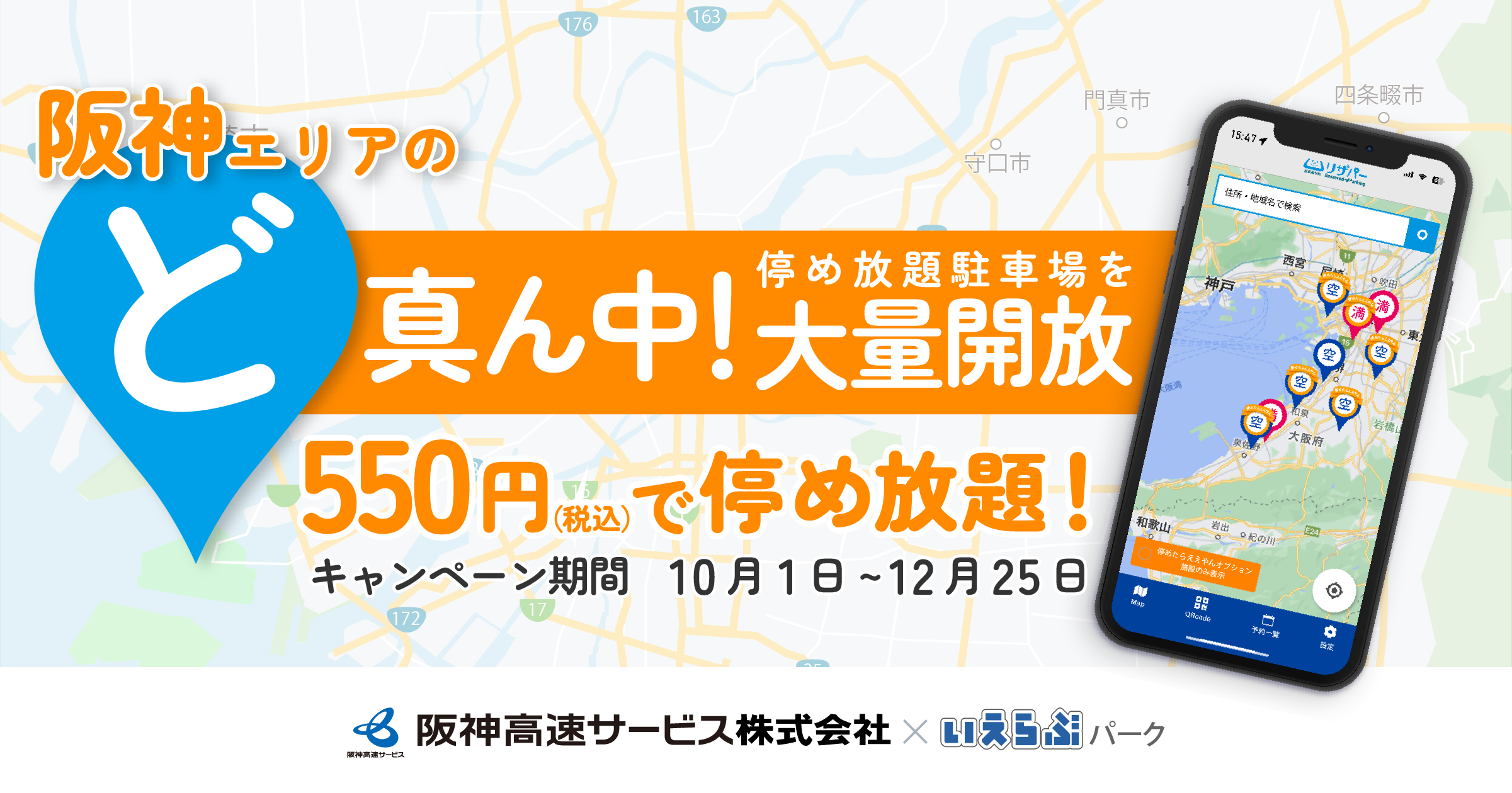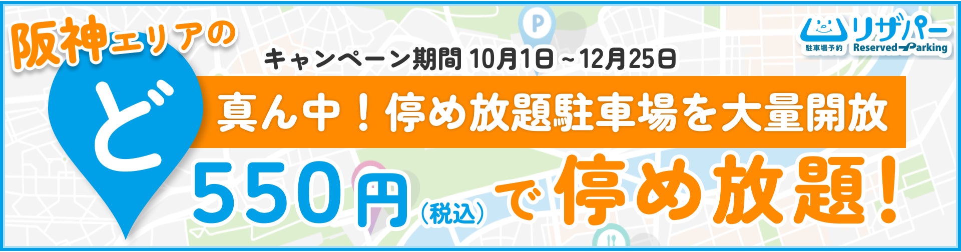 いえらぶパークと阪神高速サービスでは、10月1日からいえらぶ駐車場会員(※2)向けの「ど真ん中!大量開放キャンペーン」を実施いたします。このキャンペーン期間中は、通常「停めたらええやんプラン」に含まれない好立地な駐車場も月額550円(税込)で利用できます。