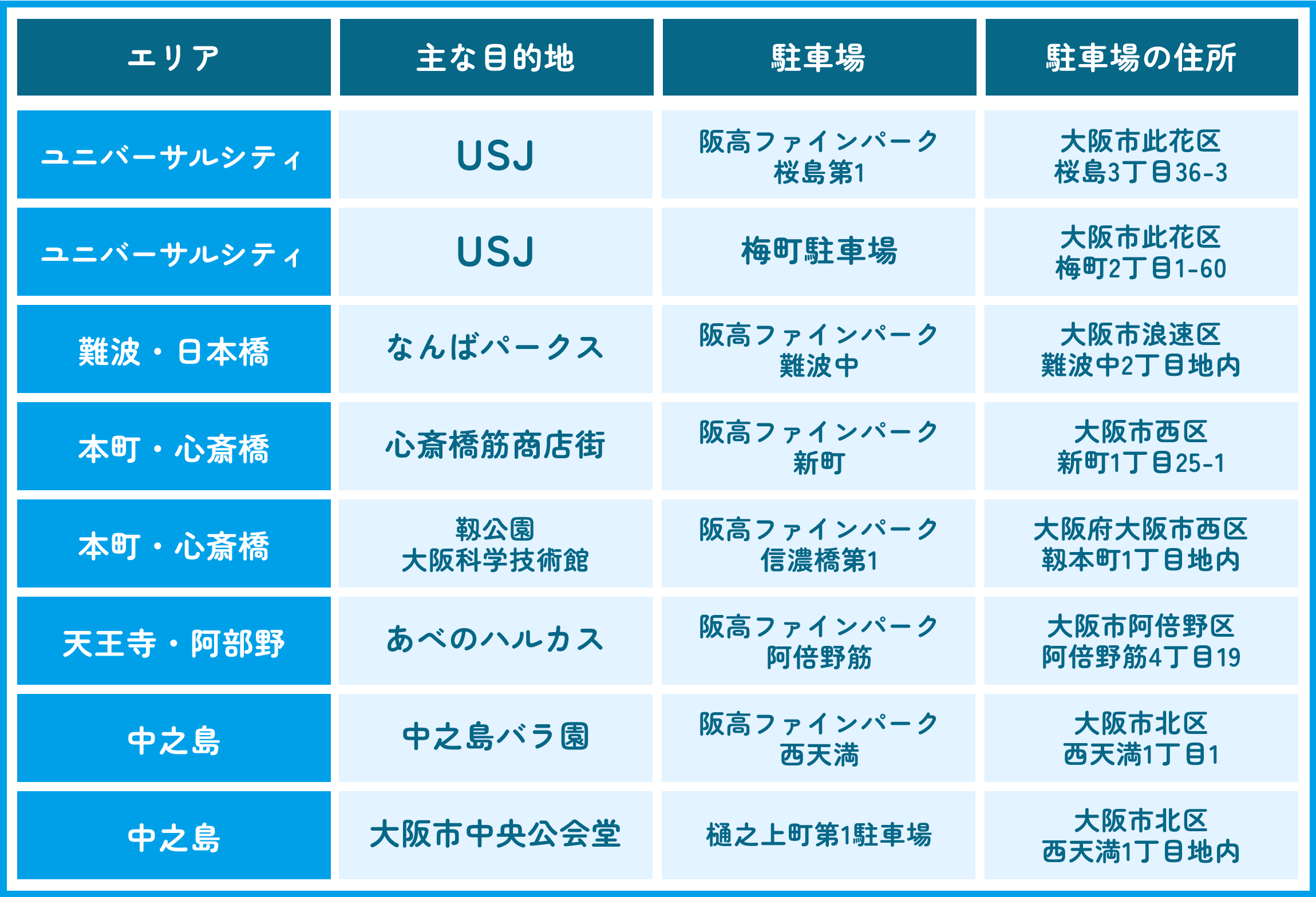 ■「ど真ん中!大量開放キャンペーン」対象の主な駐車場