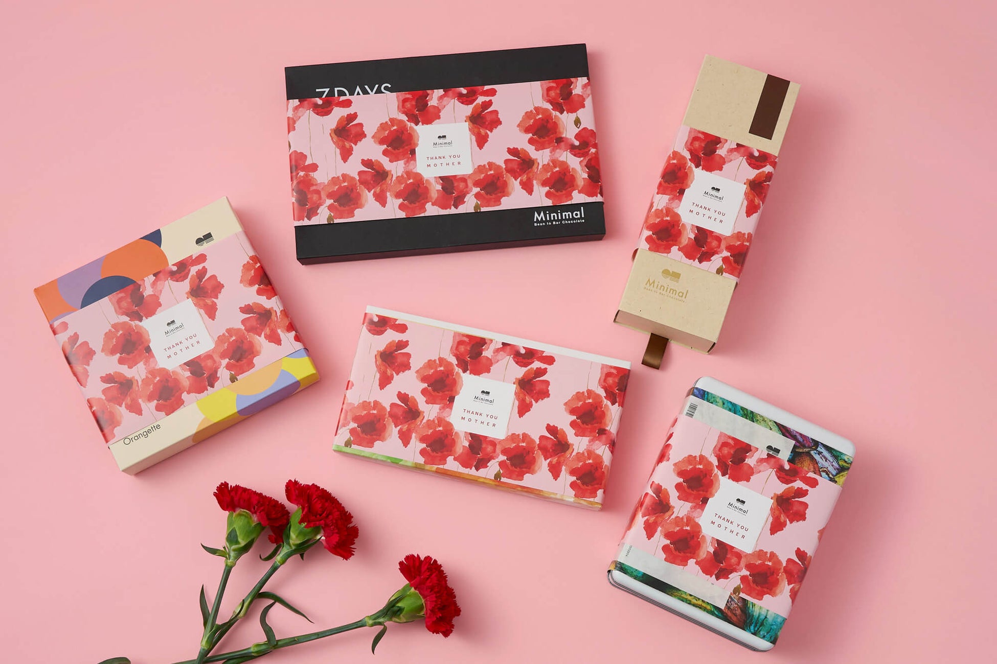 バレンタインで好評を博した味わいはそのままに、母の日という特別な日にふさわしい限定デザインのラッピングもご用意しました。
