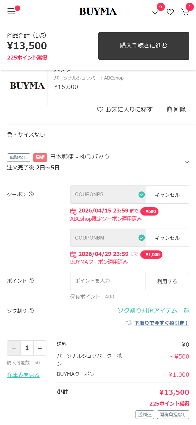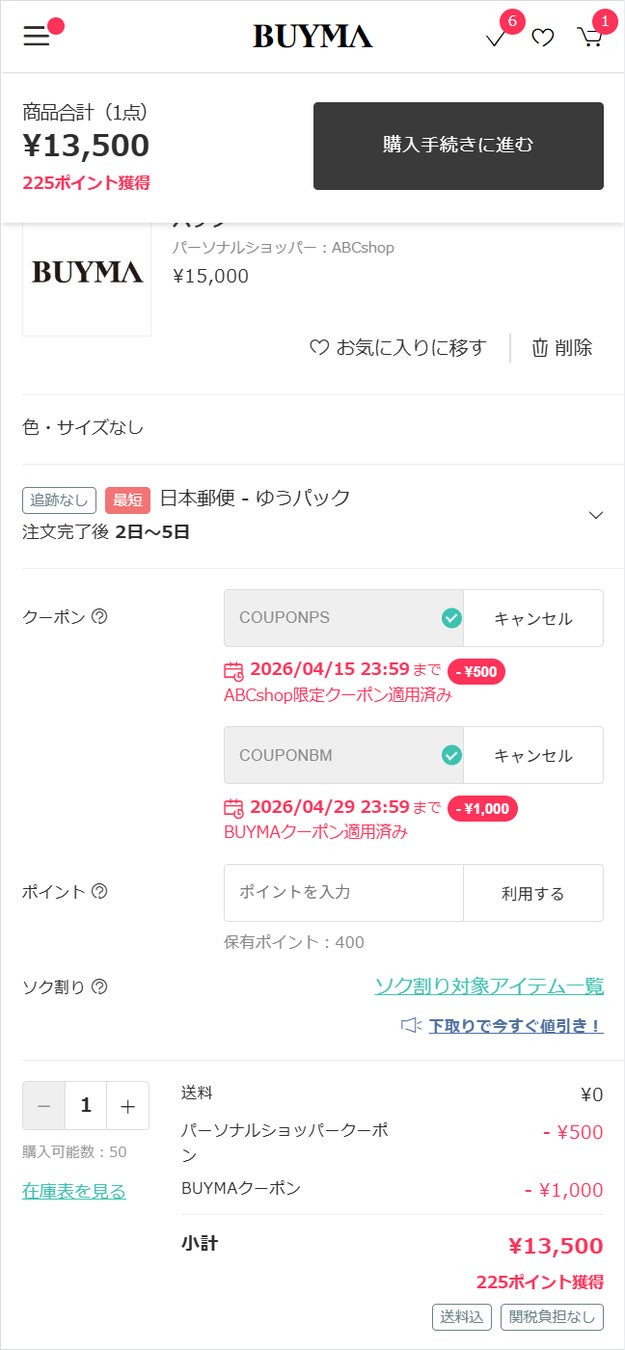 パーソナルショッパークーポン(自動適用)+ BUYMAクーポン |