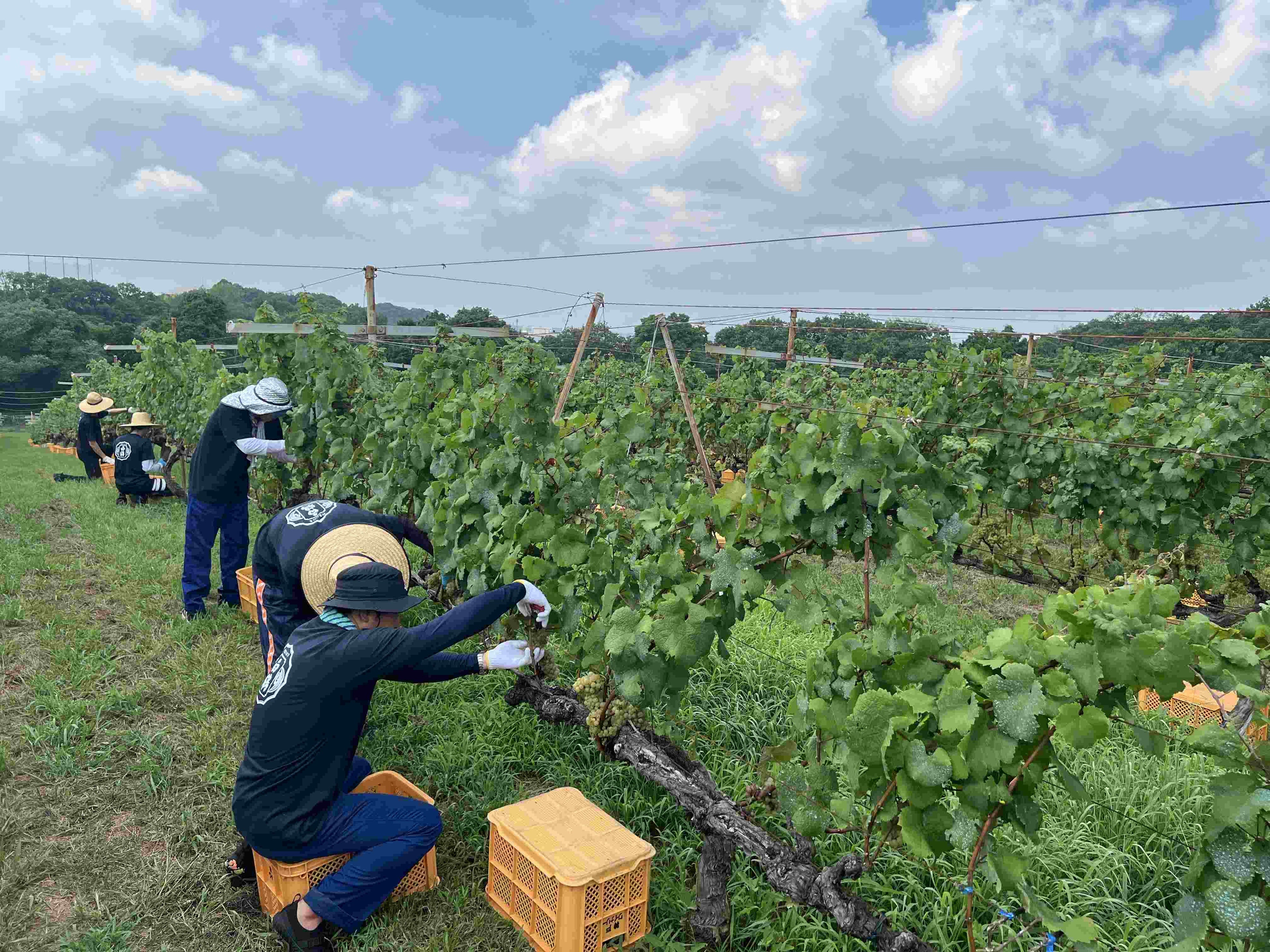 白鶴酒造は神戸ワイナリーの圃場で2025年のぶどうの収穫をスタート