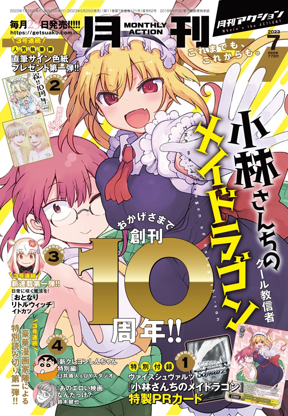 5月25日、創刊10周年を迎えた「月刊アクション」。記念すべき7月号表紙は『小林さんちのメイドラゴン』。双葉社では、「月刊アクション10周年記念公式サイト」を公開しております。