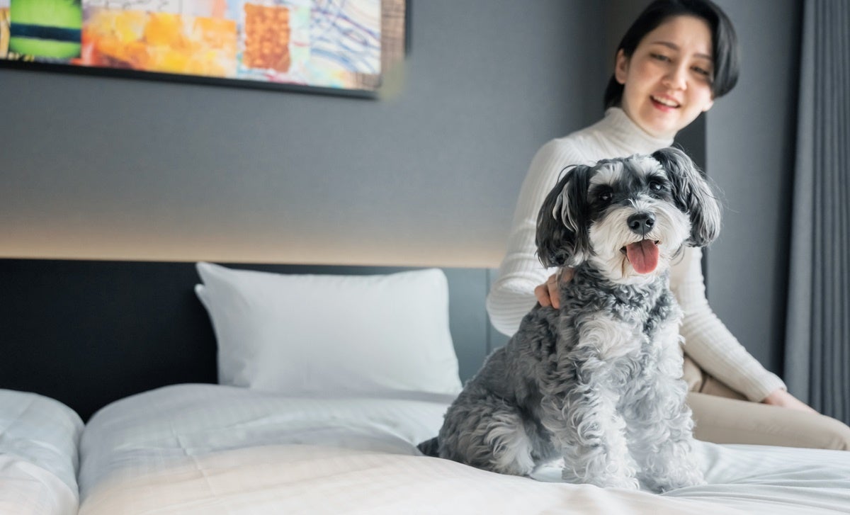 「hotel anddoggy京都二条」は、大切な家族である愛犬が、旅先でも家のような心地よさを感じられるホテルとして、2024年3月にグランドオープンしました。二条城前から徒歩3分という好立地で、京都の人気観光地に愛犬と一緒に行きたいという願いが叶うホテルです。全42室が愛犬同伴可能で、添い寝もできるドッグファーストな設計となっており、愛犬が自由にベッドを乗り降りできるベッドステップも設置されているため、安心して過ごせます。また、都市部にありながら、中型・大型犬(30キロまで)も受け入れ可能で、お部屋以外にもドッグラウンジやドッグシャワーなどの充実した共有エリアが備わっています。