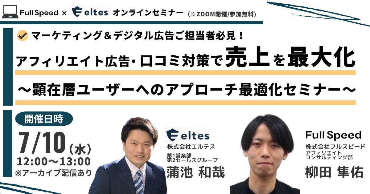 【7月10日(水) オンラインセミナー】マーケティング&デジタル広告ご担当者必見!アフィリエイト広告・口コミ対策で売上を最大化