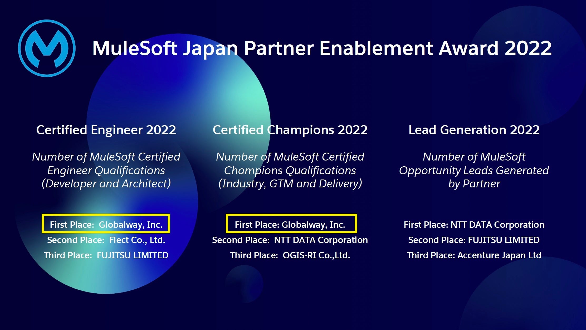 MuleSoft Japan主催 MuleSoftJapan Partner Enablement Award2022 3部門中2部門をW受賞!グローバルウェイが国内No.1に!