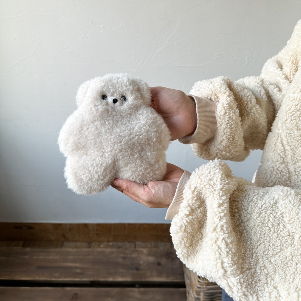 かわいらしいぬいぐるみのような見た目のくまは、実は保温材を入れてカイロのように使うウォーマーベア。