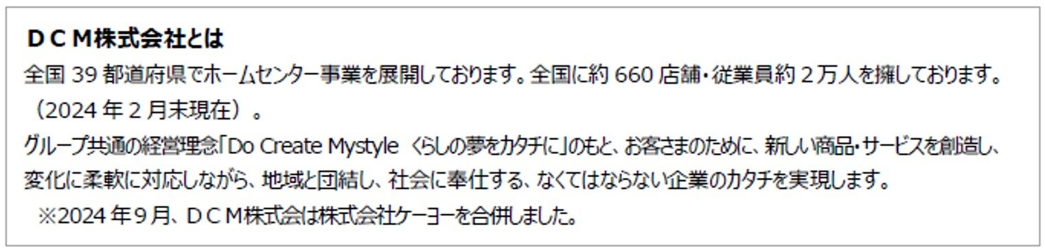 全国でホームセンター事業を展開するDCM株式会社(本社:東京都品川区、代表取締役社長:石黒靖規)は、DCM呉羽駅北店(富山県富山市)を11月14日(木)にオープンいたしますのでここにご案内いたします。