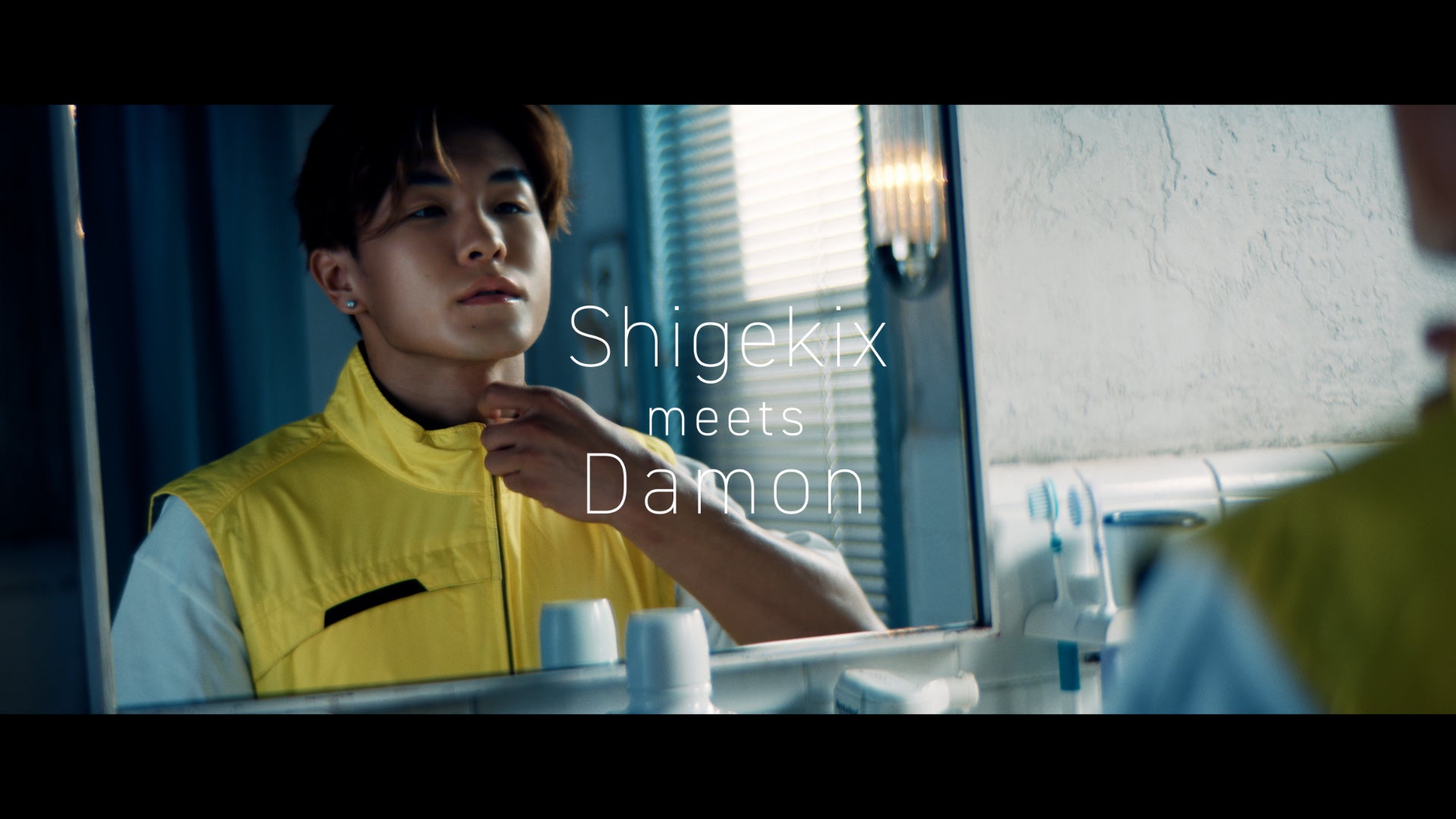 CMは、Shigekix選手が仲間と会う前に、鏡の前で身なりを整えるシーンからスタートします。『Damon』で口をすすぐと、ビートに乗ったShigekix選手のダイナミックなダンスが、口内のよごれをはじき飛ばしているようなシーンに切り替わります。“においの元のよごれが見える”のコピーが登場した後、Shigekix選手の代名詞ともいえる得意技「フリーズ」を披露します。最後のシーンでは『Damon』を使用して、口臭を気にせず仲間とコミュニケーションを楽しむShigekix選手が映し出されます。