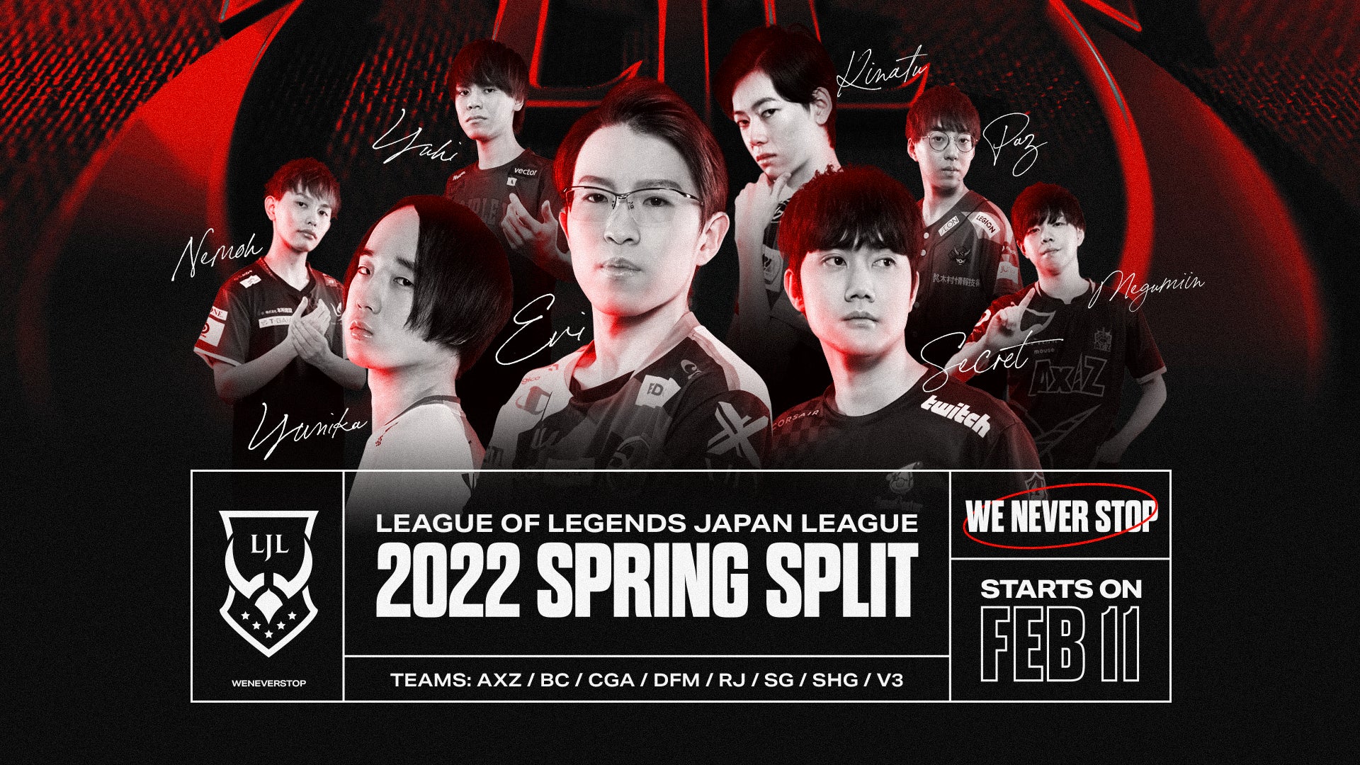今年夏には「LJL 2022 Summer Split」「LJL Academy League」「LJL Scouting Grounds」の開催も予定しています。さらに多くのファンの方々に観戦を楽しんでいただけるリーグ運営を目指して参ります。