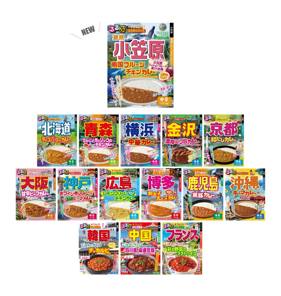 2023年に50周年を迎えた旅行情報誌『るるぶ』と1905年(明治38年)に日本で初めて国産カレー粉を製造・販売したハチ食品とのコラボレーションにより、地域の特性をイメージしたカレーを通じて、「旅行気分を演出する」という食の楽しみ方をご提案いたします。