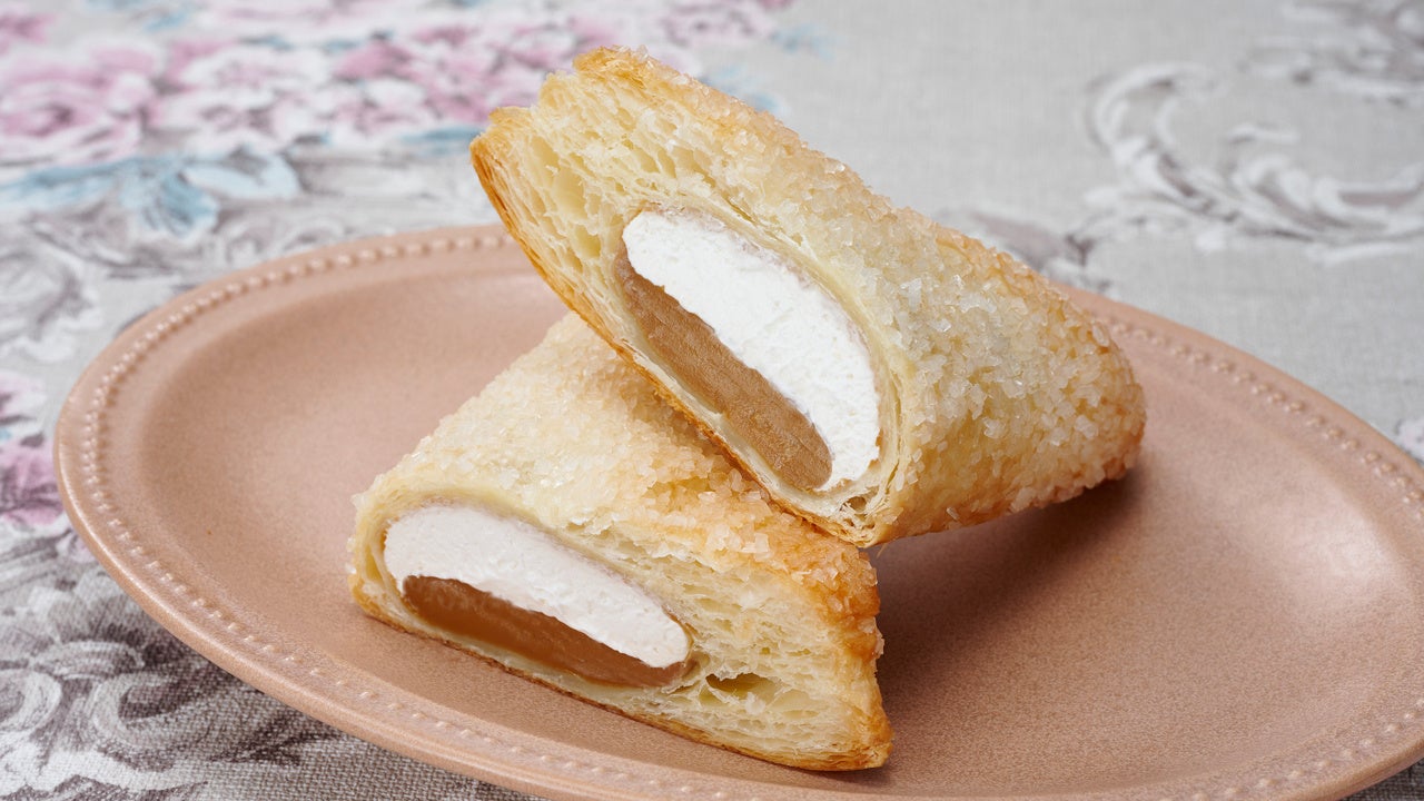 「ツインシュー(カスタード&ホイップ)」はローソンストア100のデザート部門でも常にトップクラスの人気を誇る定番商品ですが、従来品よりクリームを約1.3倍に増量し、更に魅力を高めました。コクのあるカスタードクリームとミルク風味のホイップクリームがたっぷりと詰まっています。さらに、フレーバー違いの商品として「ツインシュー(キャラメルクリーム&ホイップ)」を同時発売。キャラメルクリームとミルク風味のホイップクリームが相性抜群です。