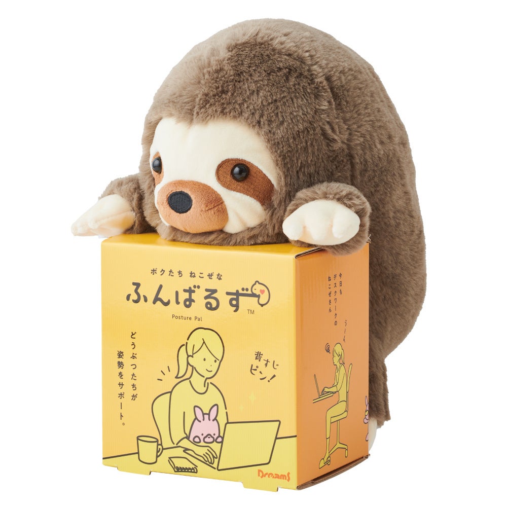【販売数量10万個突破!“猫背”なあなたを支えるぬいぐるみ】ビッグサイズになった『ふんばるず』が、“猫背”なあなたの姿勢をよりしっかりとサポート!「ふんばるず LLサイズ ナマケモノ」が新発売。