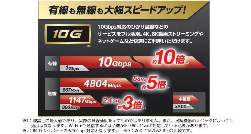 - 10Gbps対応の通信回線のメリットも活かせる、超高速通信対応のハイエンドモデル!