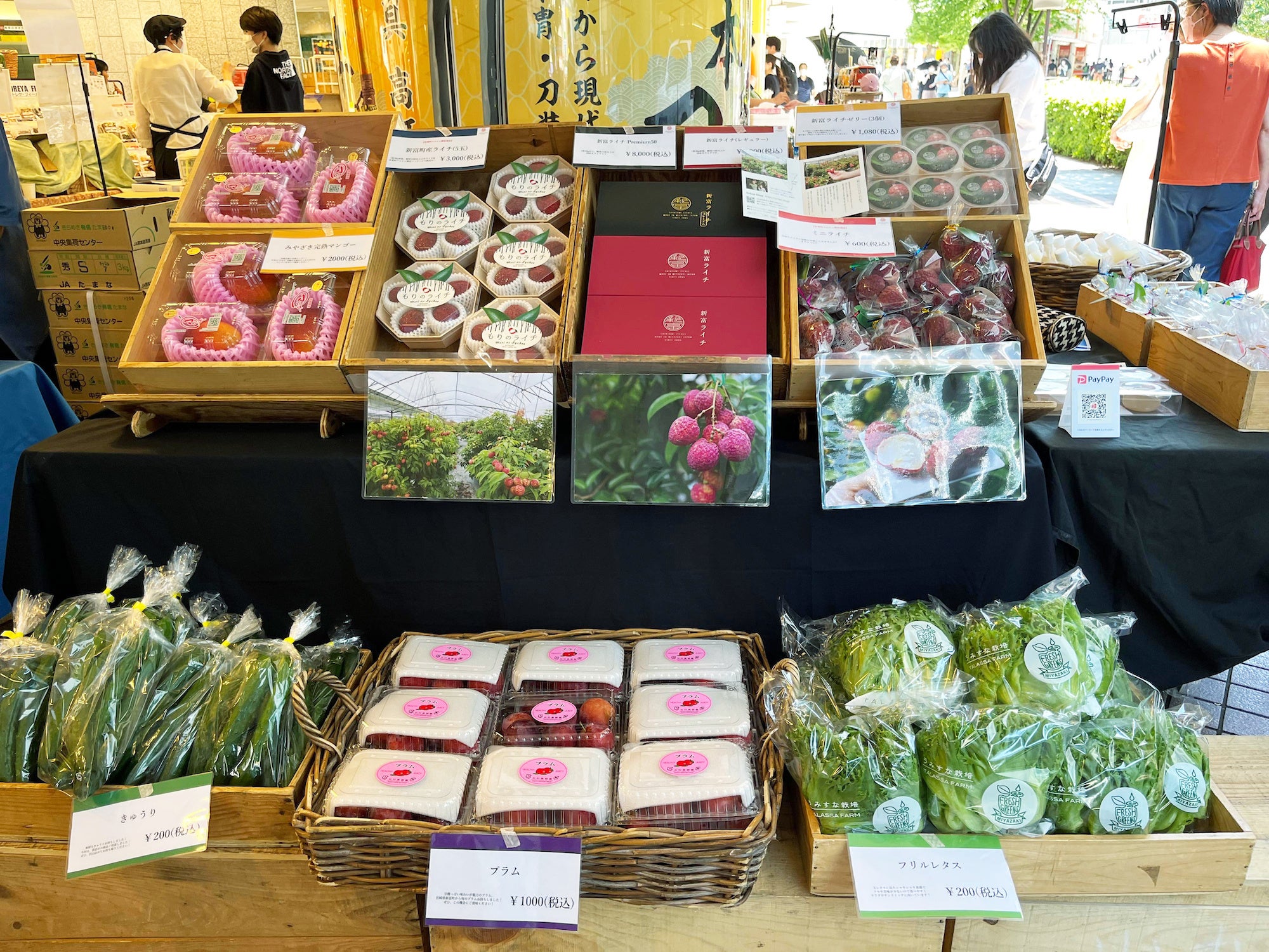 1年でたった2ヶ月しか味わえない、新富町産の国産生ライチ。その1粒に、見て触れて味わえる感動体験が詰まっています。マルシェ当日は、弊社の野菜ソムリエプロが店頭でお待ちしております。ライチをはじめ新富町産のフルーツや野菜の魅力について存分にお伝えいたしますので、ぜひお気軽にお声かけください。