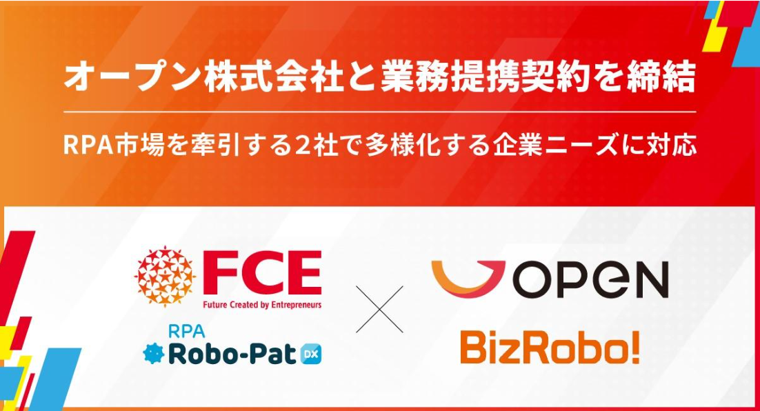 【FCE】オープン株式会社と業務提携契約を締結 RPA市場を牽引する2社で多様化する企業ニーズに対応