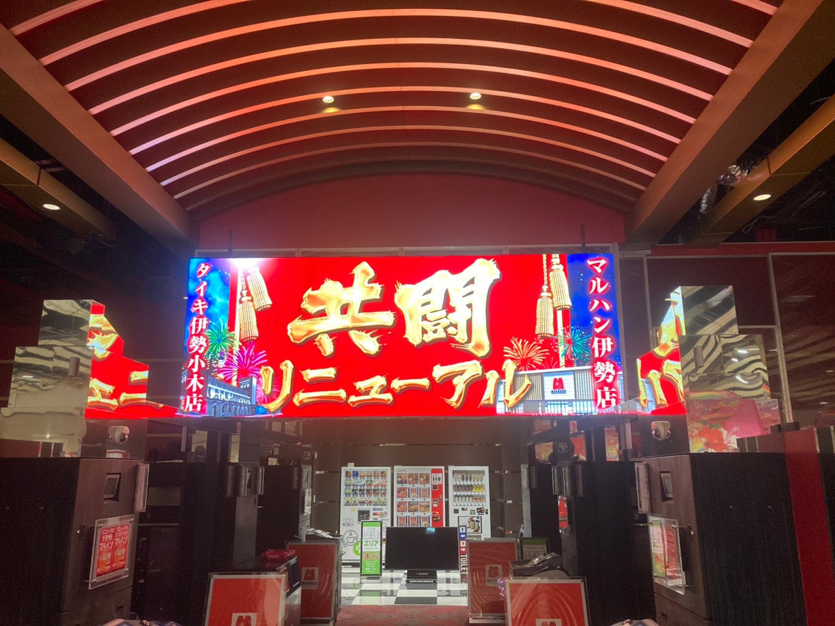 2023年12月19日に三重県伊勢市にリニューアルオープンした「マルハン伊勢店」にLEDビジョンを設置しました。