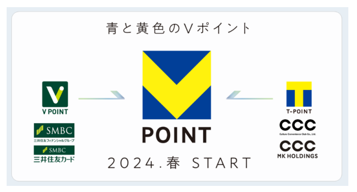 「Vポイント」と「Tポイント」は2024年春に統合し、青と黄色の『Vポイント』へと生まれ変わります。2024年春以降は、SMBCグループおよびCCCMKHDが提供するサービスのご利用で貯まるポイントは青と黄色の『Vポイント』となり、ポイント交換不要でご利用いただけます。世界中のVISA加盟店で使える「Vポイント」と、約1.3億人(有効ID数)の皆さまにご利用いただいている「Tポイント」がひとつになることで、より多くの皆さまにポイントも決済もシームレスにご利用いただける、さらに価値のあるサービスをご提供していく予定です。
