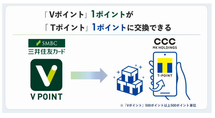 ※「Vポイント」から「Tポイント」への交換は500ポイント以上500ポイント単位となります。