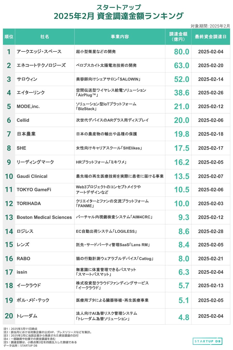 ・レポート記事:STARTUP DB (https://journal.startup-db.com/articles/funding-ranking-202502)