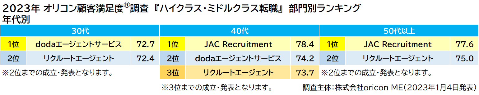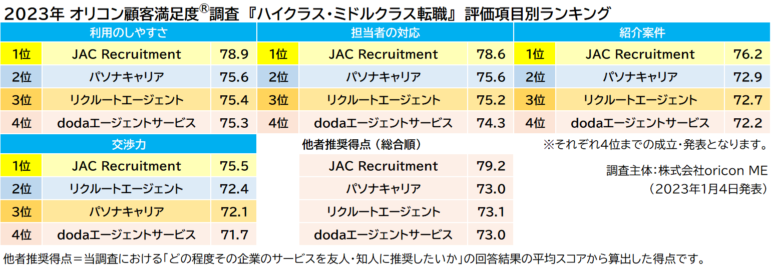 《2023年 オリコン顧客満足度®調査 ハイクラス・ミドルクラス転職 総合1位 JAC Recruitment》