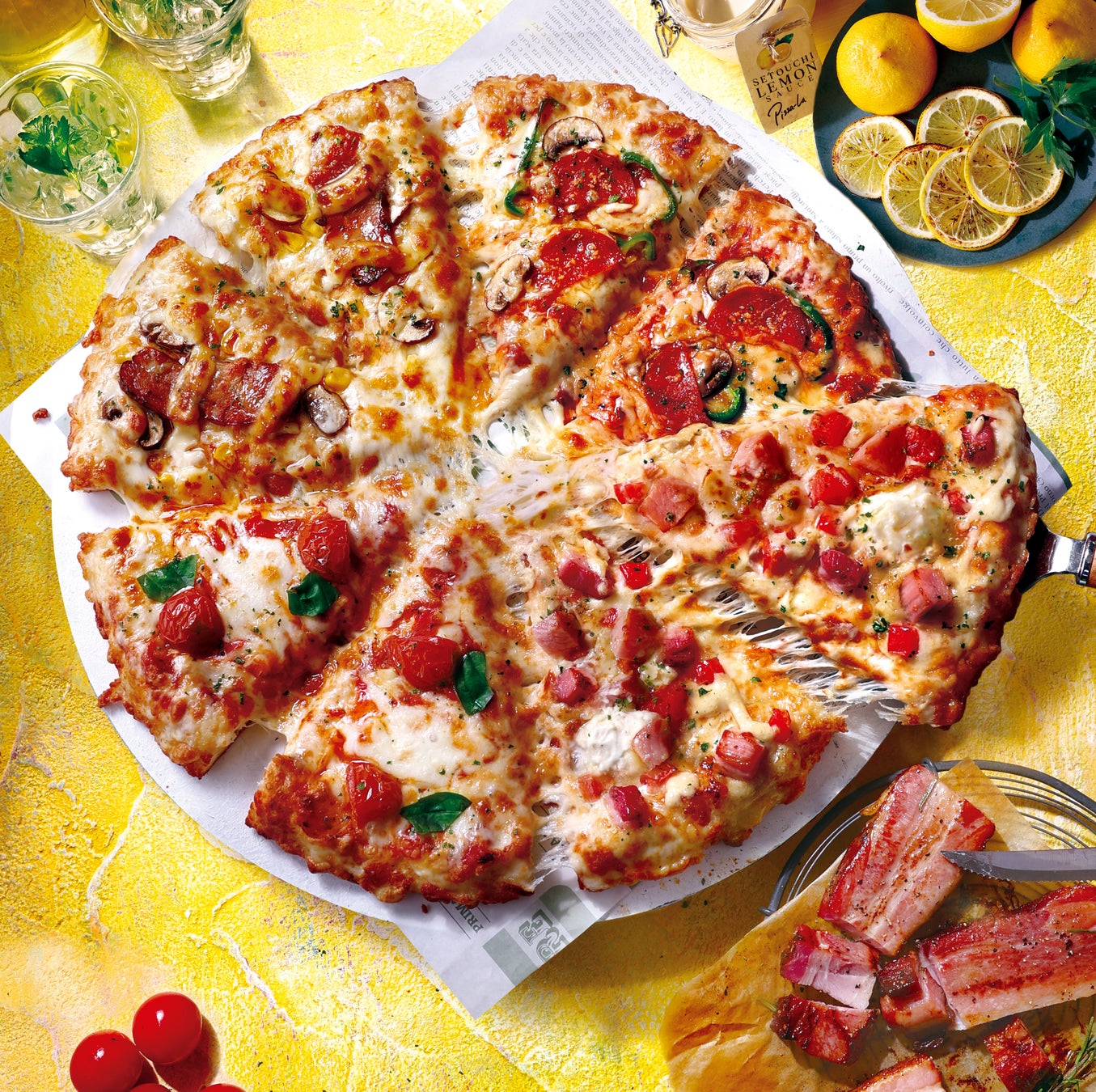 累計販売数1,850万枚*を突破した「よくばりシリーズ」の夏のイチキュッパ(Mサイズ税抜1,980円)に、さわやかなレモンソースが美味しい『熟成パンチェッタのよくばりクォーター』が登場。