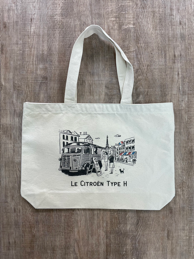クラシックカーとして人気のシトロエンのシトロエン・タイプHがプリントされたトートバッグです。
