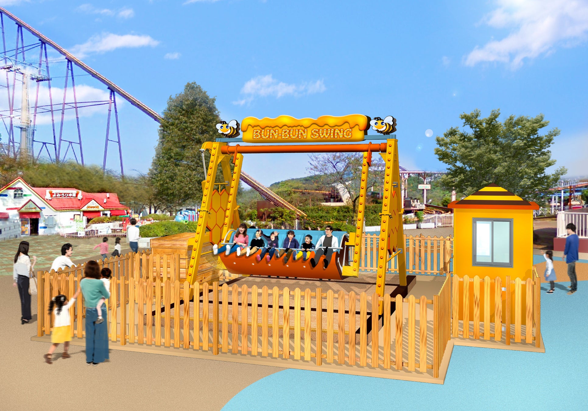 遊園地「よみうりランド」は3月20日(木祝)、新アトラクション「ぶんぶんスイング」をオープンします。キュートなミツバチのデザインが目を惹くブランコ型アトラクションです。”ぶんぶん”と大きなスイングを繰り返し、まるで飛んでいるようなスリルと爽快感が楽しめます。ファミリー向けアトラクションの定番メリーゴーランドドッグやステージショーがある太陽の広場エリアに新設します。