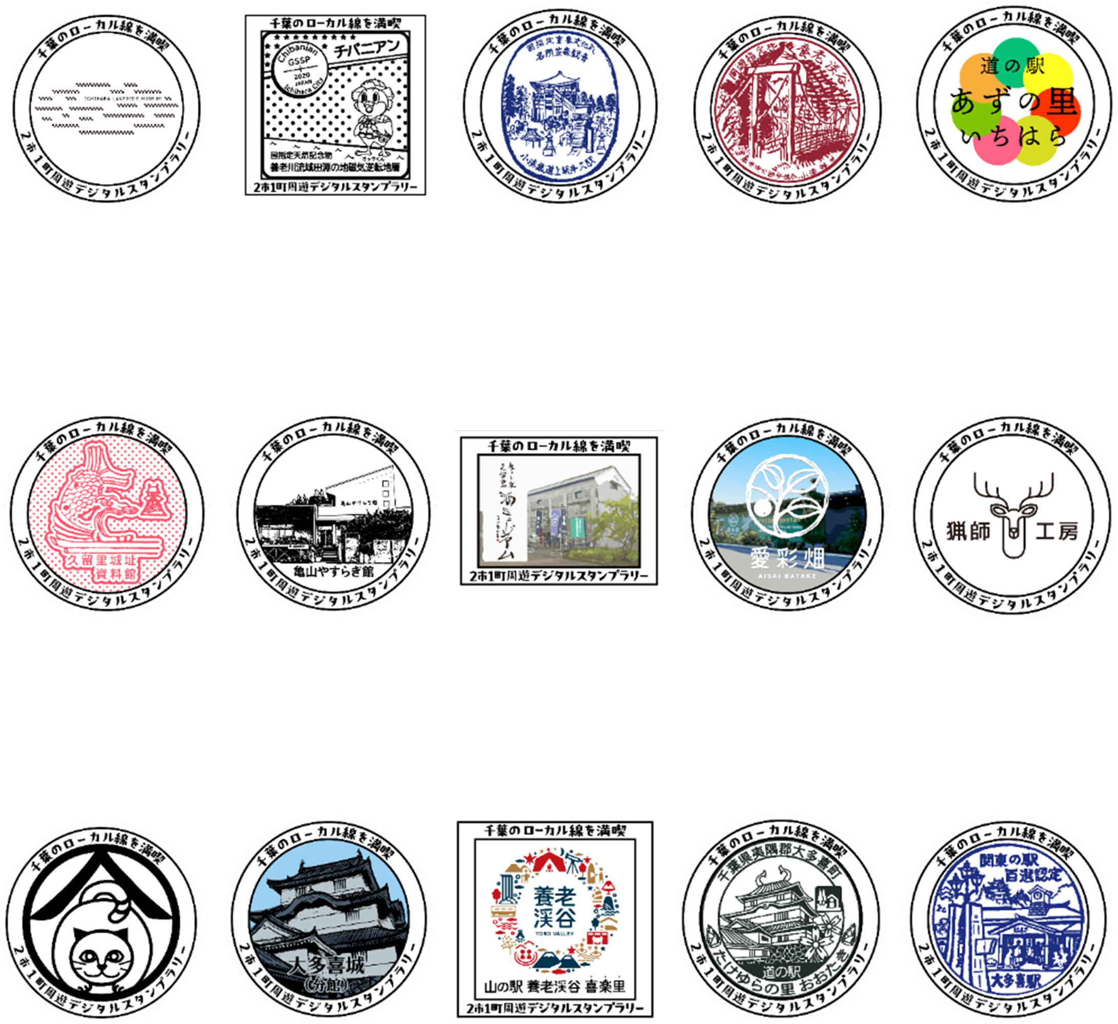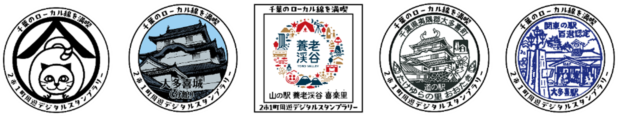 ※上総牛久駅、養老渓谷駅、大多喜駅のスタンプは期間限定のスタンプデザインとなります。