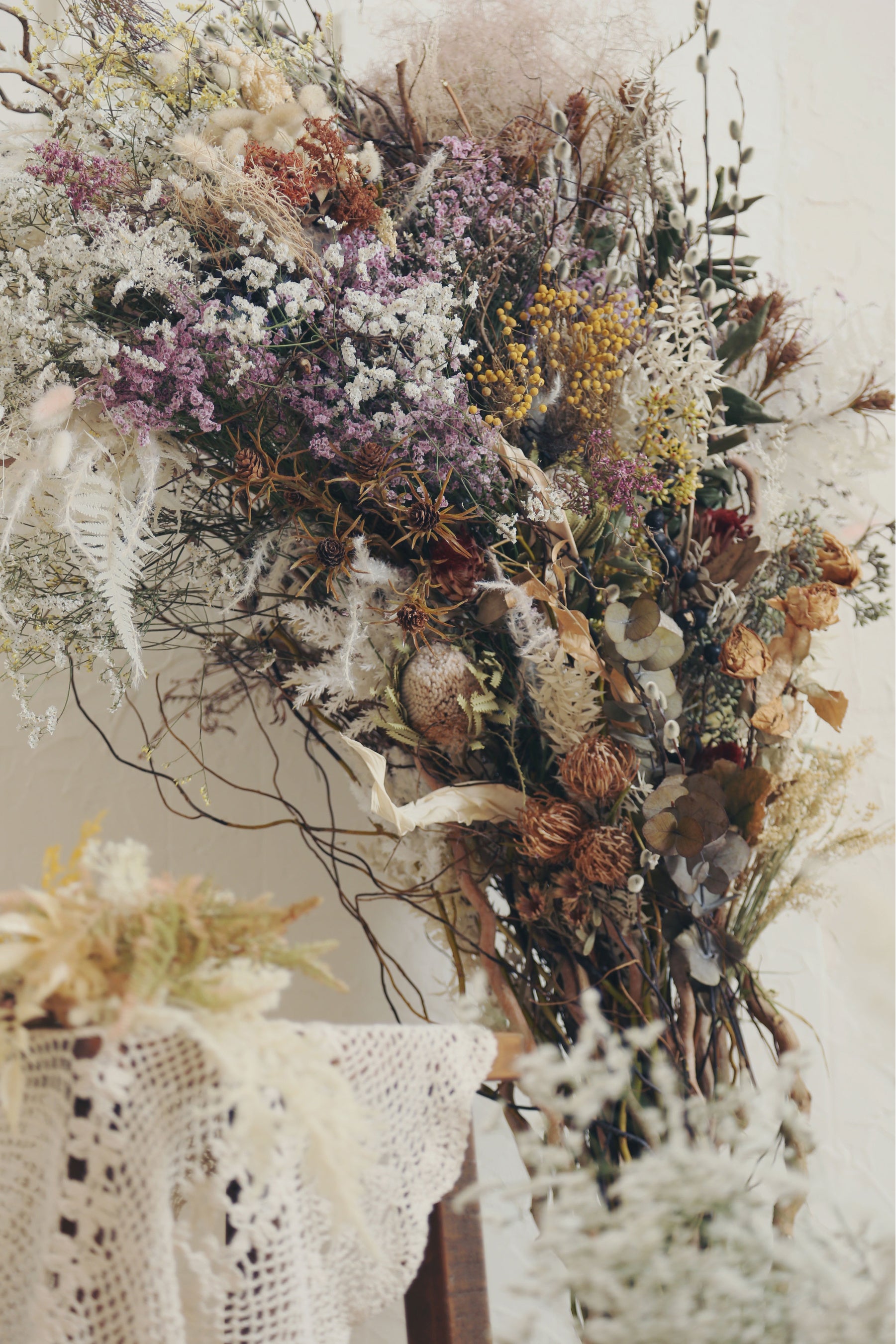 ドライフラワーで作られた木はインパクト大!広々とした空間でお一人やごきょうだい、家族写真も楽しめます。