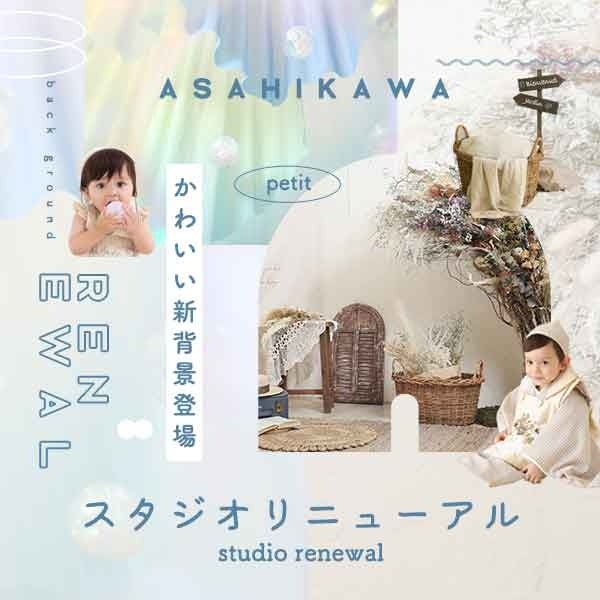 写真工房ぱれっと旭川店ベビーキッズスタジオがリニューアルオープン。百日記念・1歳記念・七五三・入学撮影、そして家族撮影まで幅広くお楽しみいただけます。