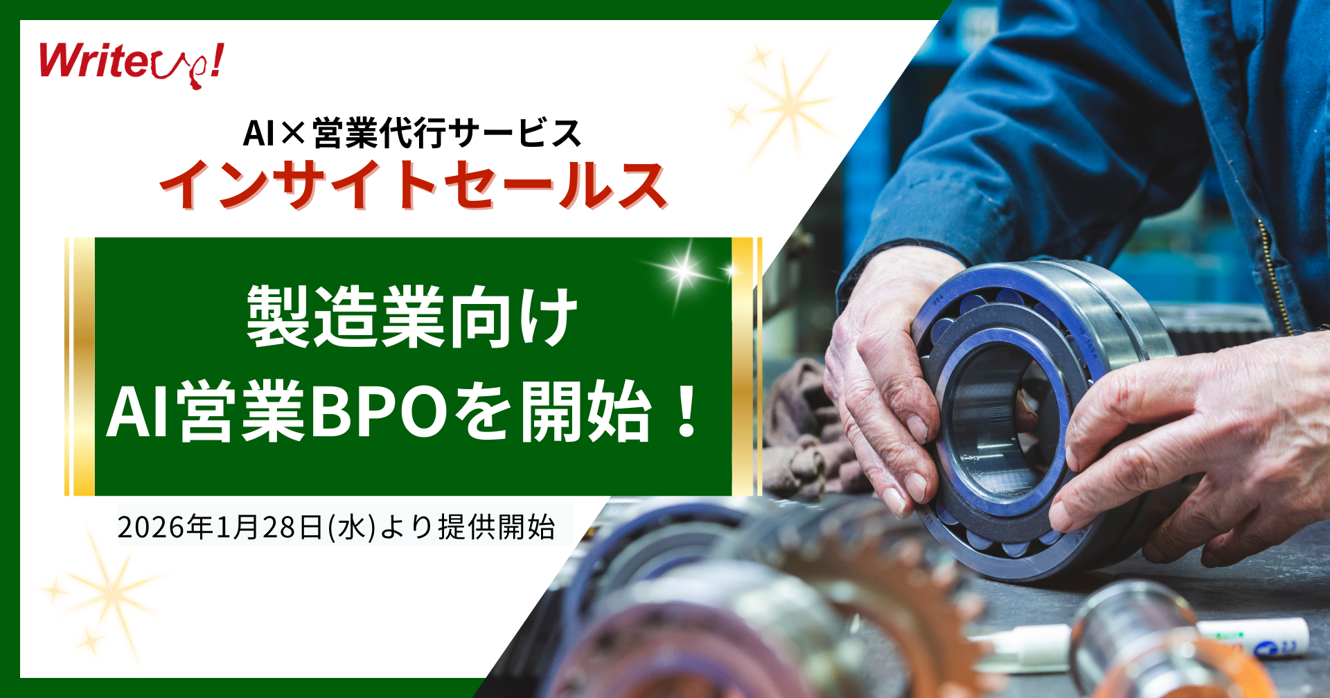 株式会社ライトアップ(証券コード 6580)は、製造業向けのAIを活用した営業BPOサービス「インサイトセールス 製造業向けパッケージ」を2026年1月28日(水)より提供開始いたします。