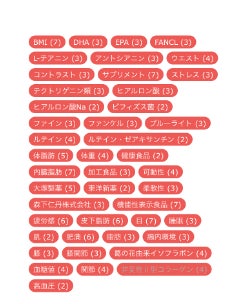 商品に関連する成分や販売元企業などに関するワードを、各製品の情報に