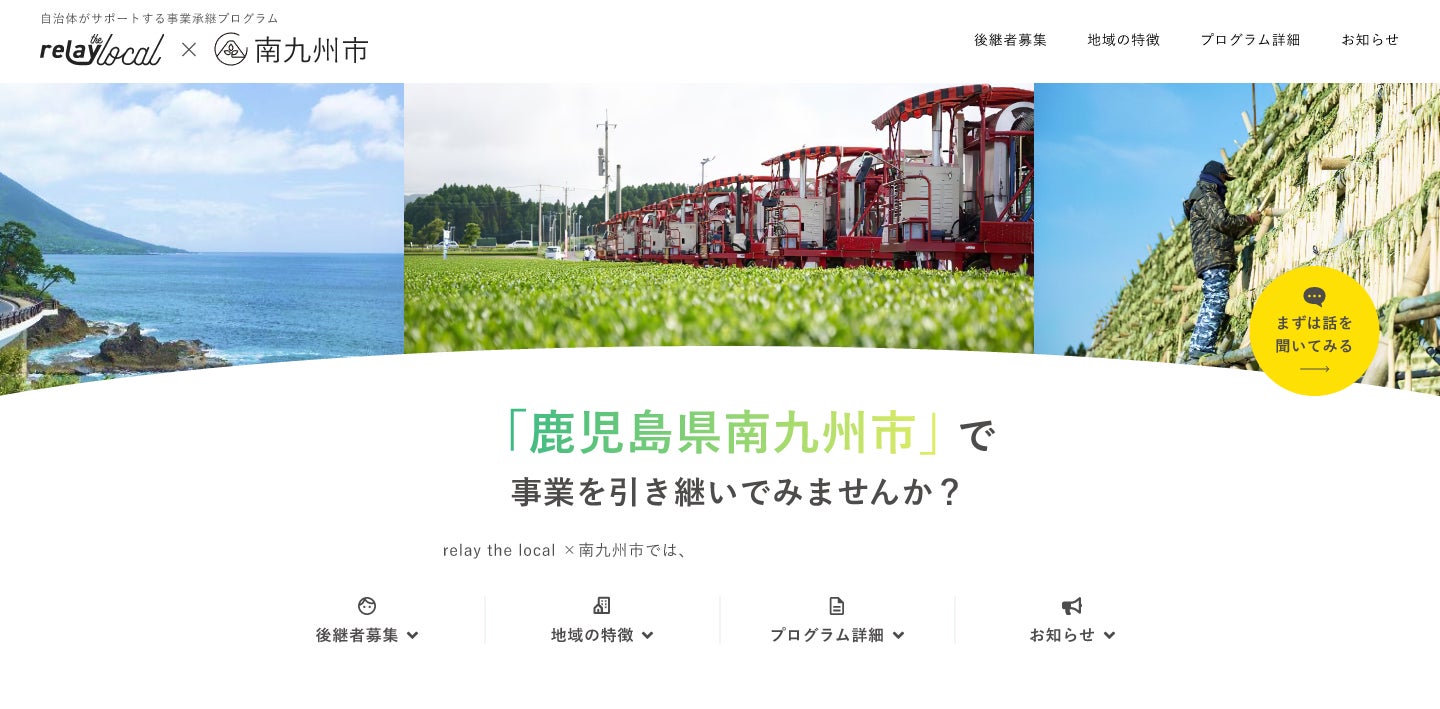 【自治体向け事業承継支援サービス】事業承継マッチングプラットフォーム「relay」、鹿児島県南九州市の「茶業」に特化した後継者募集の特設ページ「relay the local 南九州市」を開設