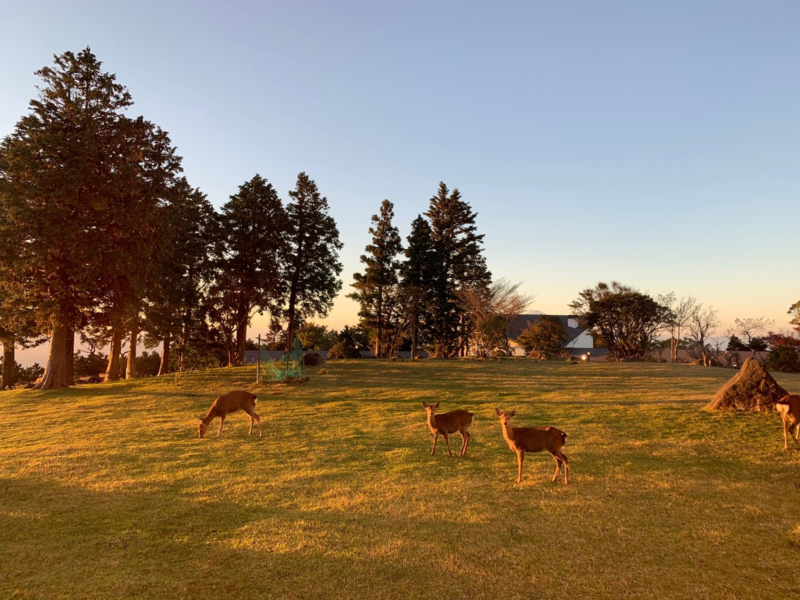 ホテルの敷地内で鹿の家族の食事風景や星空を眺めることができます