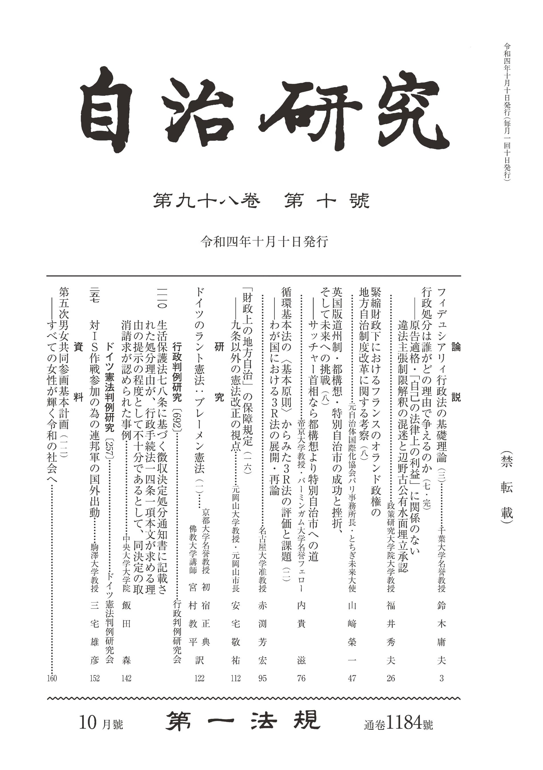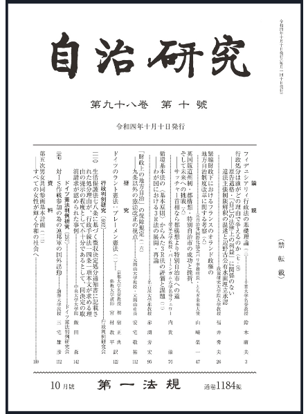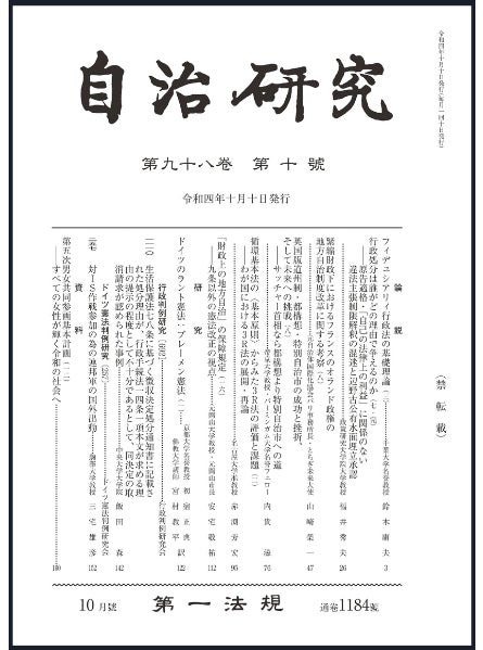 大正14年創刊の公法・行政学・地方自治行財政に関する優れた論文を集めた伝統ある総合月刊誌です。