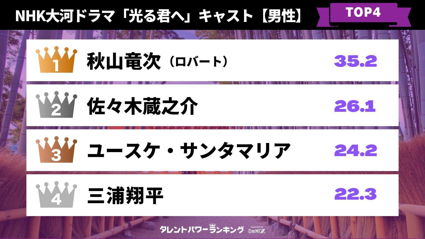 『タレントパワーランキング』では、タレントパワーランキングに登録されている、大河ドラマ「光る君へ」に出演しているタレントのパワースコアを調査。